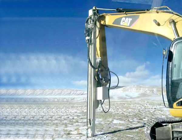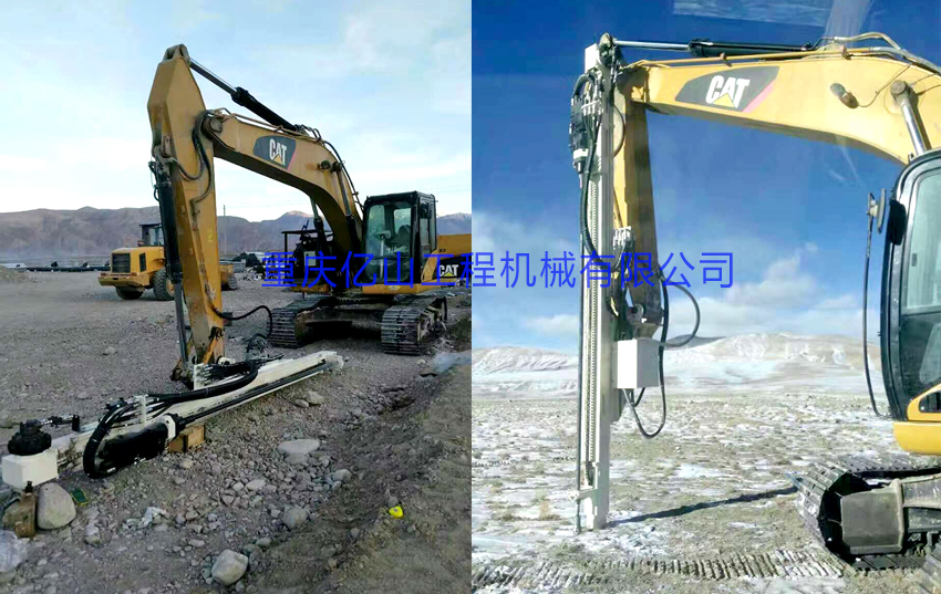 2、前后左右自由伸展,當挖掘機在工地不平坦的情況下, 挖機手可根據位置不同調整鉆桿角度,保持90°垂直鉆孔。