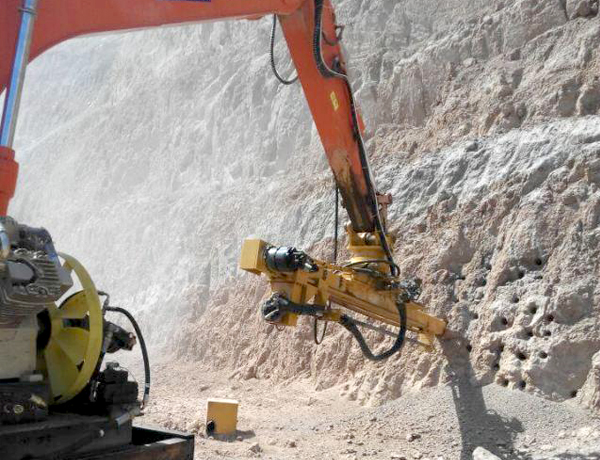 億山挖改切削鉆機各系列產品,廣泛適用于頁巖、砂巖、風化巖、泥巖等硬度相對較低的各類巖石的各種爆破前鉆孔作業;借助挖機的操作靈活性也可用于錨桿鉆孔;使用成本遠遠低于一體式鉆機。具操作簡易,設計人性化,感觀直接,實現挖掘機一機多用等特性。