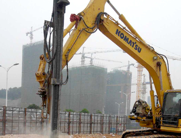 2、前后左右自由伸展,當挖掘機在工地不平坦的情況下, 挖機手可根據位置不同調整鉆桿角度,保持90°垂直鉆孔。