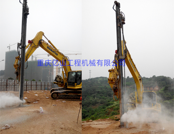 1、安裝拆卸方便。挖掘機小臂不用拆卸,不影響挖掘機自身功能,直接類似掛破碎錘一樣,管路系統都可以共用,真正實現一機五用并互換:挖土、破碎錘、切削鉆、鑿巖機、潛孔鉆。拆卸時間和換斗時差不多,約10-20分鐘。