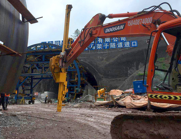 遼寧沈陽中鐵-斗山挖機改裝隧道錨桿鉆機38-54mm4米深