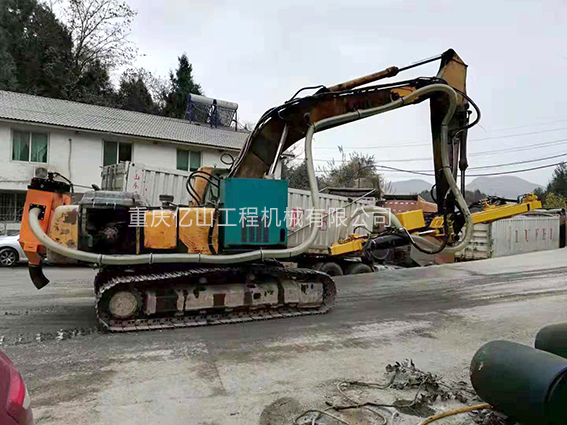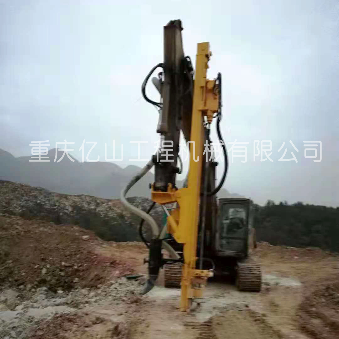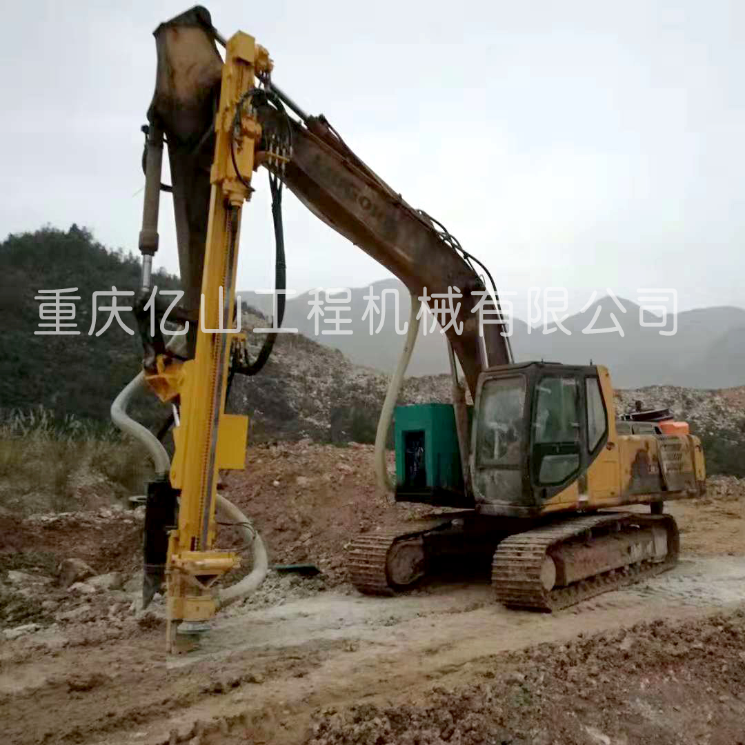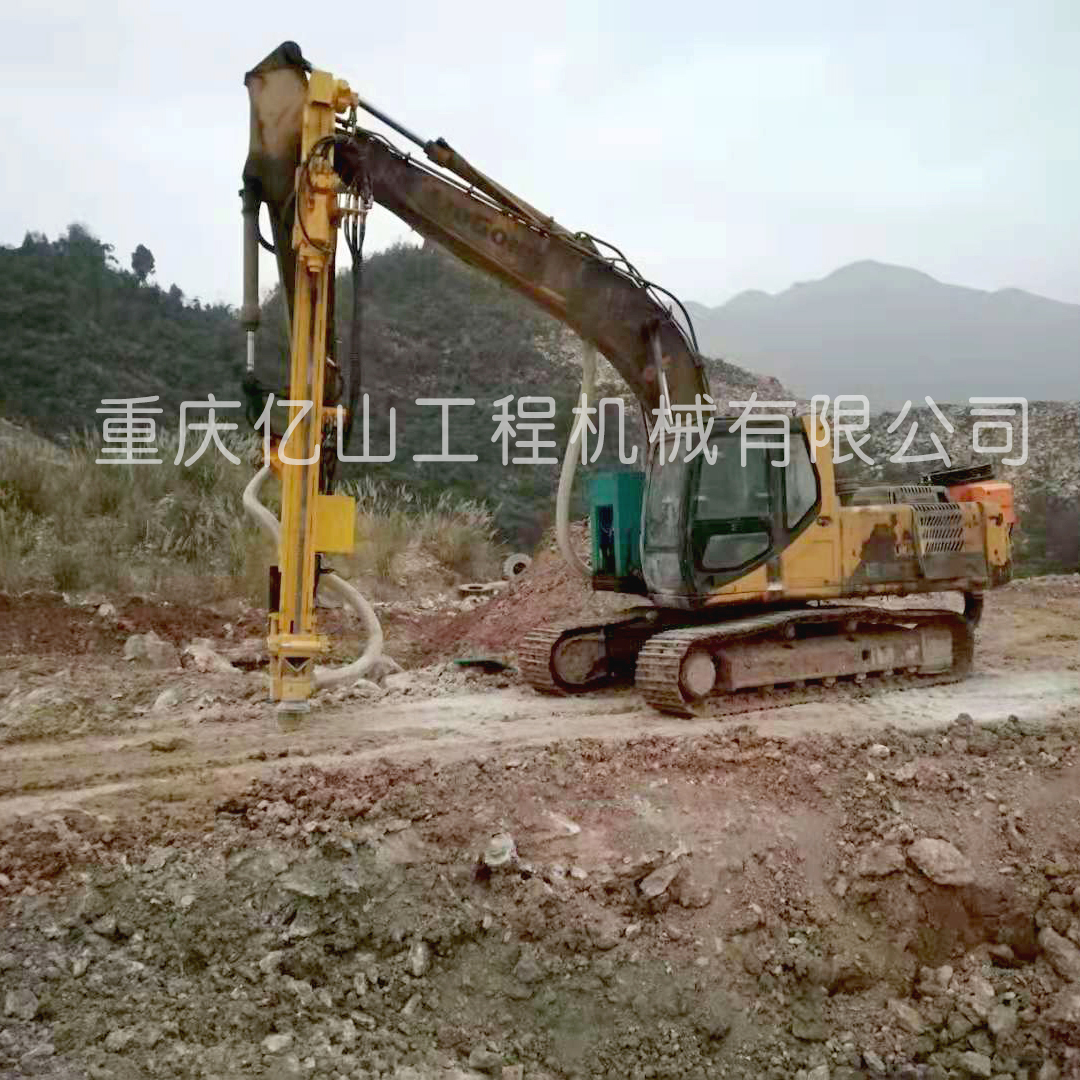 四川綿陽工地現場--挖機改裝全液壓鑿巖鉆機(90孔-1-15米)定制