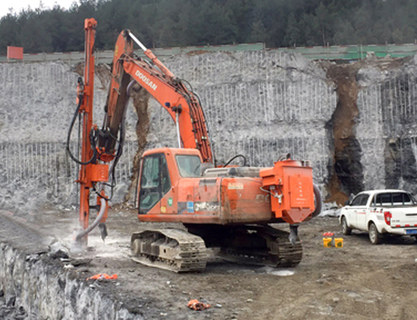 挖機改鉆機為您開啟了新的施工方法。挖斗+破碎錘+切削鉆機+鑿巖鉆機+潛孔鉆機,一機多用,為您降低成本。無論您是從事采石業、采礦業、土建工程、鋼鐵工業、隧道工程或路橋工程,在許多傳統方法失效或成本高的地方,您都可以借助這靈活、耐用、噪音小且震動低的特種機器。
