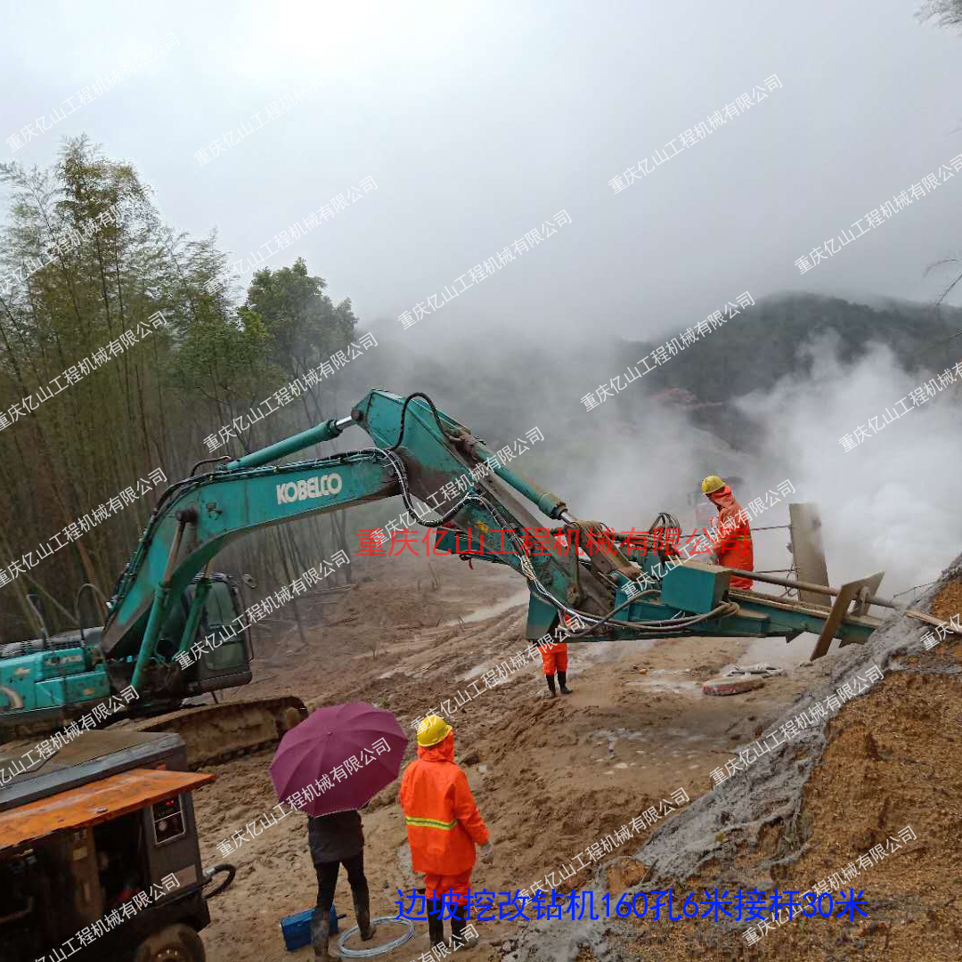 湖南長沙--神鋼350挖掘機(jī)改裝潛孔鉆機(jī)(定制160孔6米接桿35米)