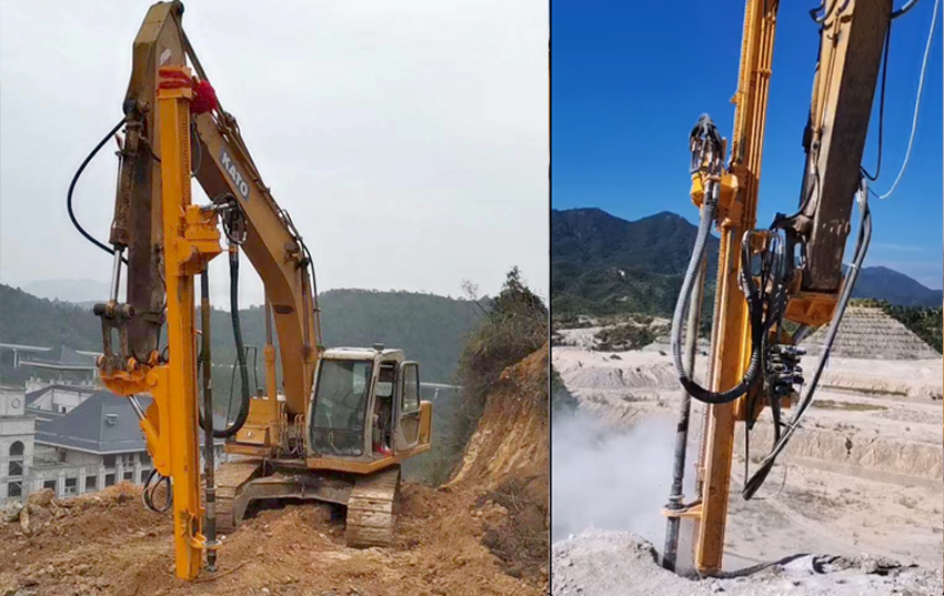 挖機改鉆機為您開啟了新的施工方法。挖斗+破碎錘+切削鉆機 +潛孔鉆機,一機多用,為您降低成本。無論您是從事采石業、采礦業、土建工程、鋼鐵工業、光伏工程、隧道工程或路橋工程,在許多傳統方法失效或成本高的地方,您都可以借助這靈活、耐用、噪音小且震動低的特種機器。