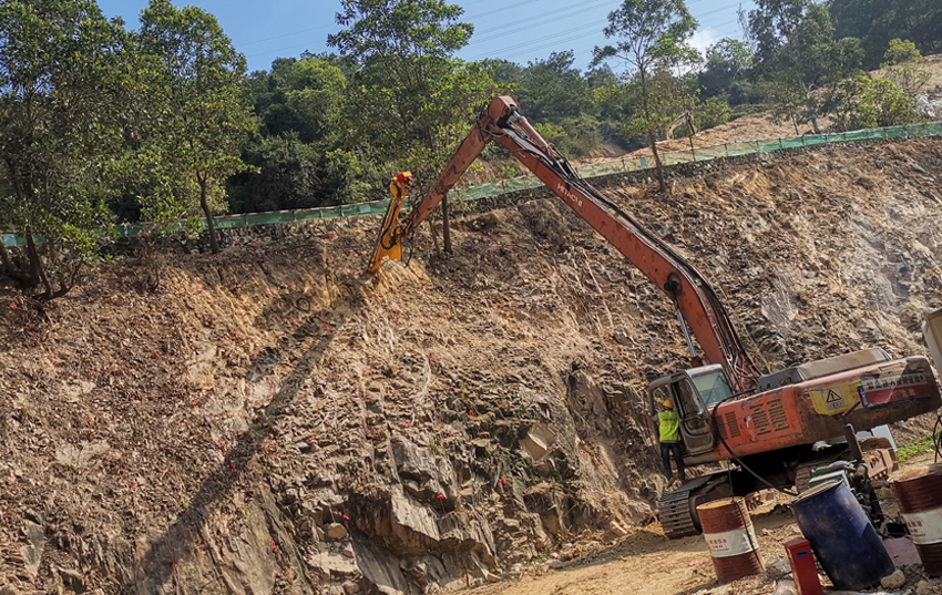 挖機改鉆機為您開啟了新的施工方法。挖斗+破碎錘+切削鉆機 +潛孔鉆機,一機多用,為您降低成本。無論您是從事采石業、采礦業、土建工程、鋼鐵工業、光伏工程、隧道工程或路橋工程,在許多傳統方法失效或成本高的地方,您都可以借助這靈活、耐用、噪音小且震動低的特種機器。
