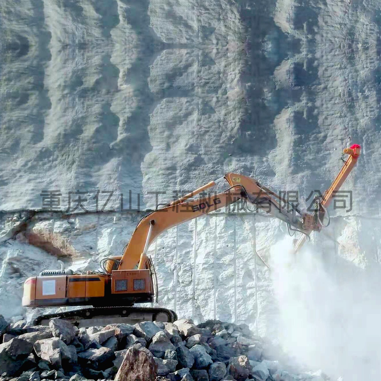 3、作業半徑擴大化 。因為挖掘機小臂不拆,它的作業半徑可以延長作業半徑2-3米,且仰角打孔、水平打孔、豎直打孔都可以實現。