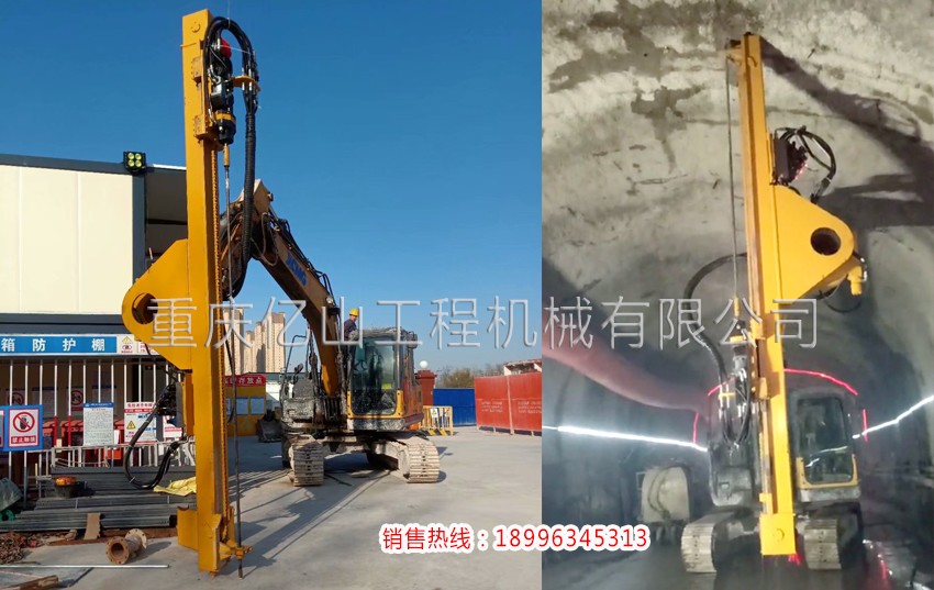 3、作業半徑擴大化 。因為挖掘機小臂不拆,它的作業半徑可以延長作業半徑2-3米,且仰角打孔、豎打孔都可以實現。