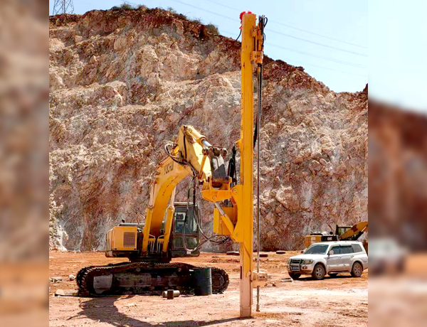 億山ES300挖改全液壓鑿巖機,廣泛適用于花崗巖、石灰石、大理石、火山石、青石、玄武巖等硬度較高的堅巖石的各種爆破前鉆孔作業(硬度F大于6級);可以借助挖機的操作靈活性用于錨桿鉆孔;也遠遠低于一體式鑿巖鉆機的采購價格。具操作簡易,設計人性化,感觀直接,實現挖掘機一機多用等特性。