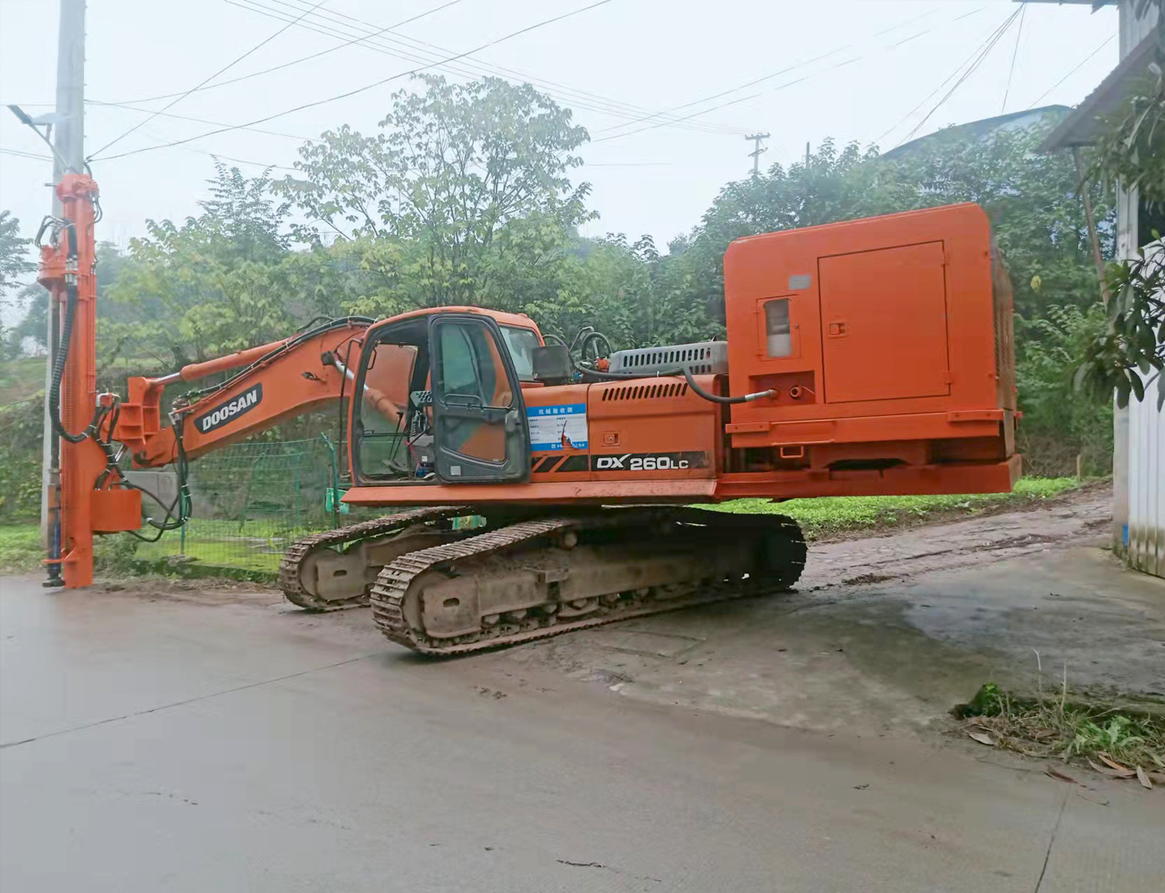 挖機改鉆機為您開啟了新的施工方法。挖斗+破碎錘+切削鉆機 +潛孔鉆機,一機多用,為您降低成本。無論您是從事采石業、采礦業、土建工程、鋼鐵工業、光伏工程、隧道工程或路橋工程,在許多傳統方法失效或成本高的地方,您都可以借助這靈活、耐用、噪音小且震動低的特種機器。