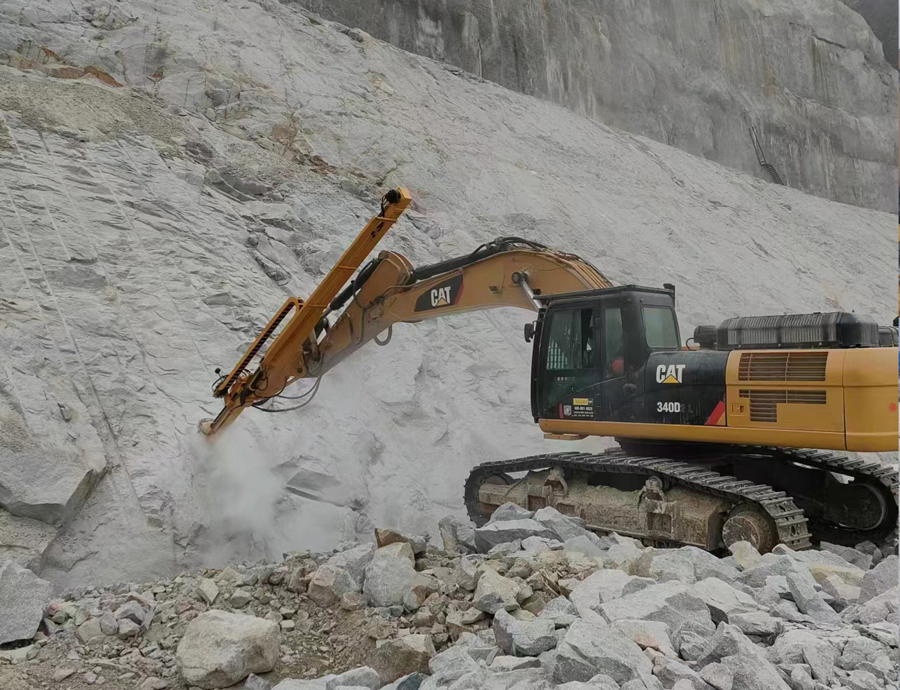 億山ES300挖改全液壓鑿巖機,廣泛適用于花崗巖、石灰石、大理石、火山石、青石、玄武巖等硬度較高的堅巖石的各種爆破前鉆孔作業(硬度F大于6級);可以借助挖機的操作靈活性用于錨桿鉆孔;也遠遠低于一體式鑿巖鉆機的采購價格。具操作簡易,設計人性化,感觀直接,實現挖掘機一機多用等特性。