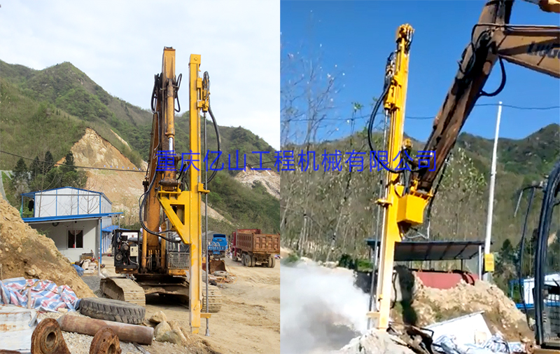 3、作業半徑擴大化 。因為挖掘機小臂不拆,它的作業半徑可以延長作業半徑2-3米,且仰角打孔、水平打孔、豎直打孔都可以實現。