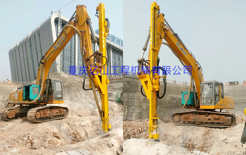 3、作業半徑擴大化 。因為挖掘機小臂不拆,它的作業半徑可以延長作業半徑2-3米,且仰角打孔、豎打孔都可以實現。