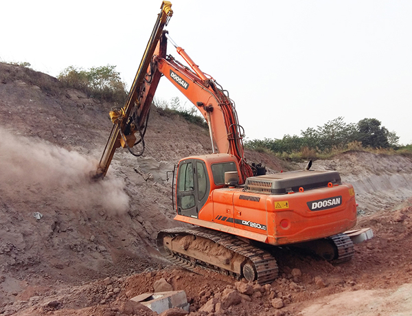 挖機(jī)改鉆機(jī)為您開啟了新的施工方法。挖斗+破碎錘+切削鉆機(jī)+鑿巖鉆機(jī)+潛孔鉆機(jī),一機(jī)多用,為您降低成本。無論您是從事采石業(yè)、采礦業(yè)、土建工程、鋼鐵工業(yè)、隧道工程或路橋工程,在許多傳統(tǒng)方法失效或成本高的地方,您都可以借助這靈活、耐用、噪音小且震動低的特種機(jī)器。