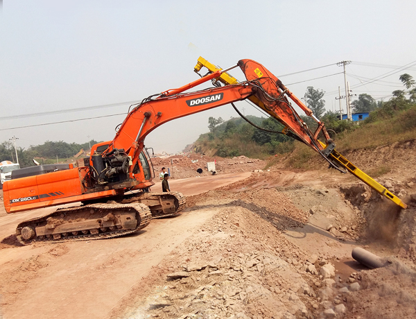 3、作業(yè)半徑擴(kuò)大化 。因為挖掘機(jī)小臂不拆,它的作業(yè)半徑可以延長作業(yè)半徑2-3米,且仰角打孔、水平打孔、豎直打孔都可以實現(xiàn)。